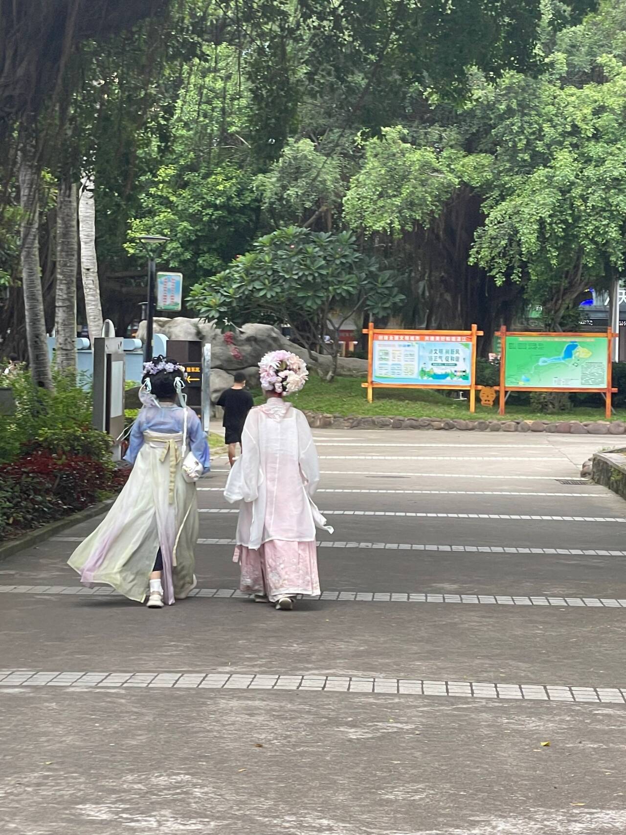 好朋友就是这样,聊着聊着脚底下就没停步,不知不觉走了十公里,愣是踱到公园里头了。也不知道最近是不是有啥讲究日子,公园里穿汉装的姑娘们随处可见,绕着园子转了一圈,手里的相机咔咔没停,竟拍了三十多张。您要是觉得这举动不地道,说我几句也没啥好辩解的 —— 实在是那些衣裳太俏,姑娘们穿得又精神,忍不住就多拍了几张。