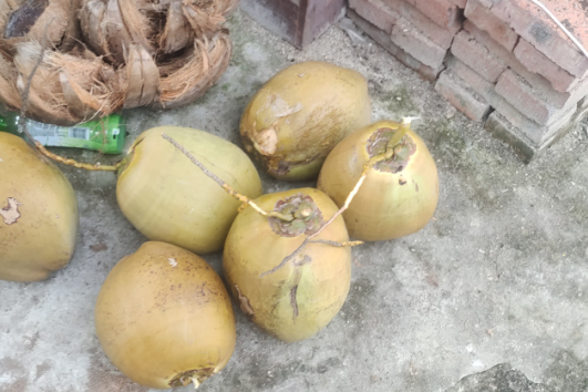 也是和爸爸舅舅出去简简单单的勾了几个椰子下来吃